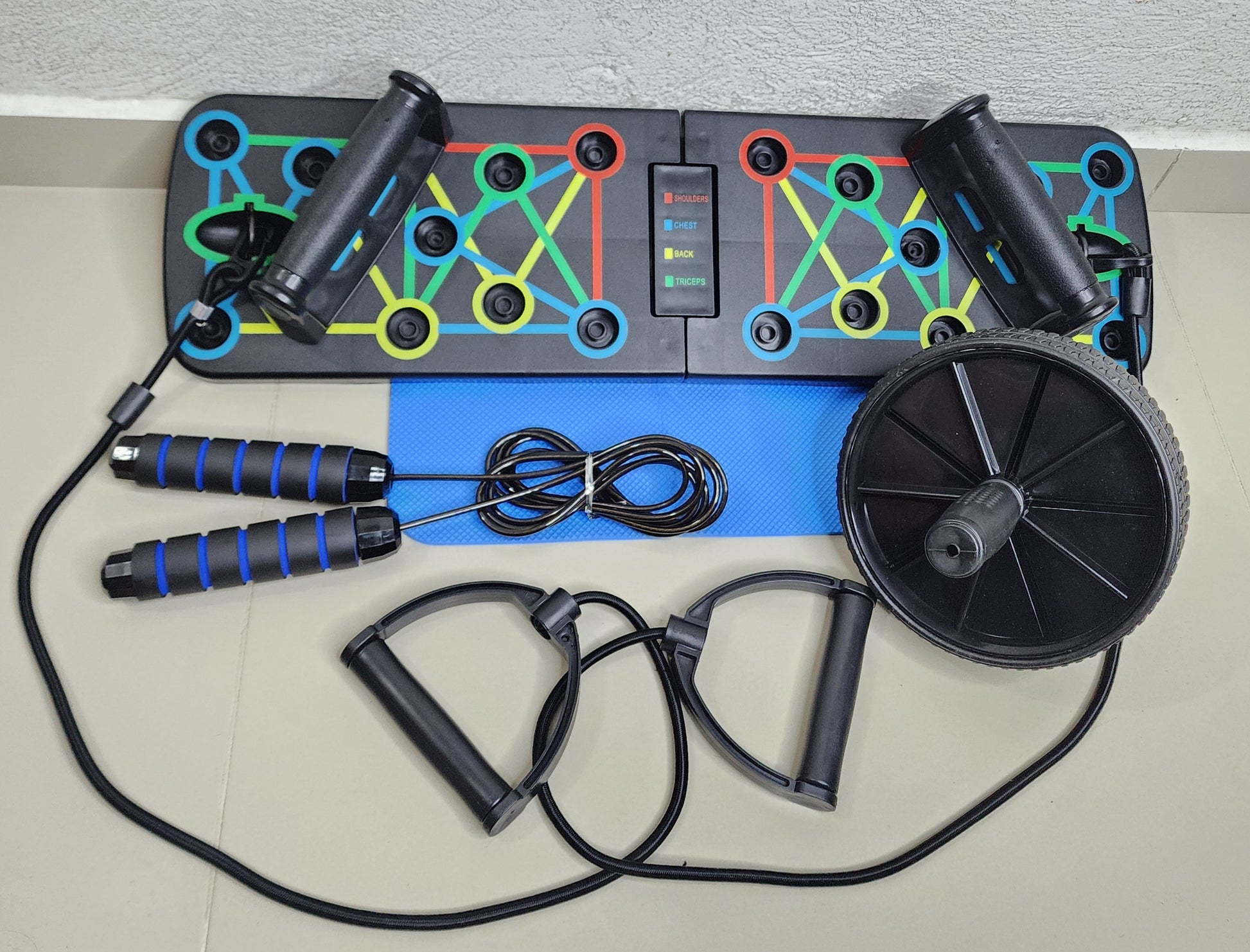 Estuve buscando muchas maquinas para hacer ejercicio pero este kit es super completo y no ocupa nada de espacio
